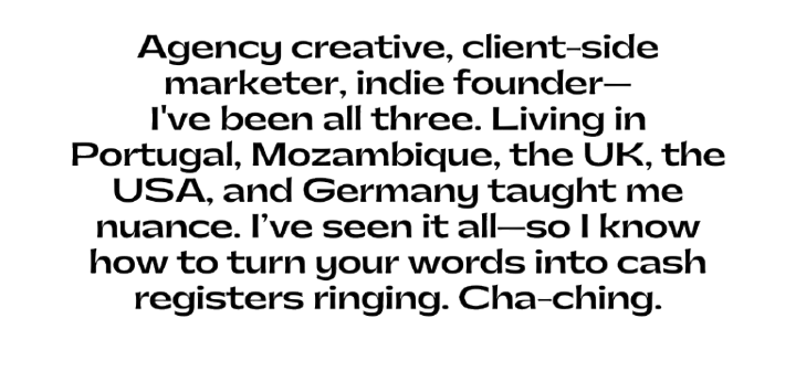 With me as your Fractional Copy Chief, you don’t outspend rivals. You outsmart them. With good copywriting. Everywhere your brand shows up.